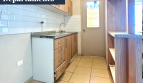 Cocina semi abierta con piso de cerámico y con muebles de cocina