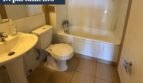 – Baño de cerámico completo con tina y espejo adhesivo grande incluido.