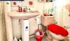 – Un baño con inodoro y lavamanos pedestal de loza cerámica y ducha de piso cerámico.
